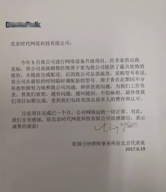 近日來(lái),我公司再次收到客戶發(fā)來(lái)的感謝信,充分肯定了我公司及時(shí),準(zhǔn)確,專業(yè)的銷售服務(wù),高度贊揚(yáng)了我公司高級(jí)銷售經(jīng)理周子青的敬業(yè)精神,對(duì)我公司提供的優(yōu)質(zhì)服務(wù)表示由衷的感謝。