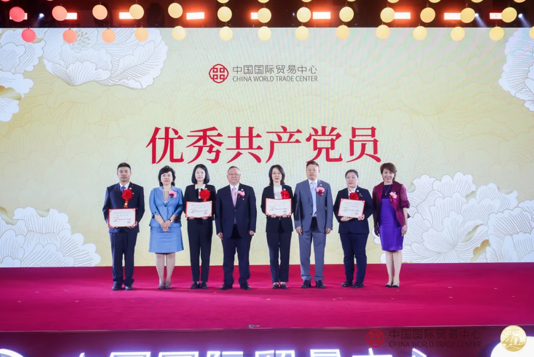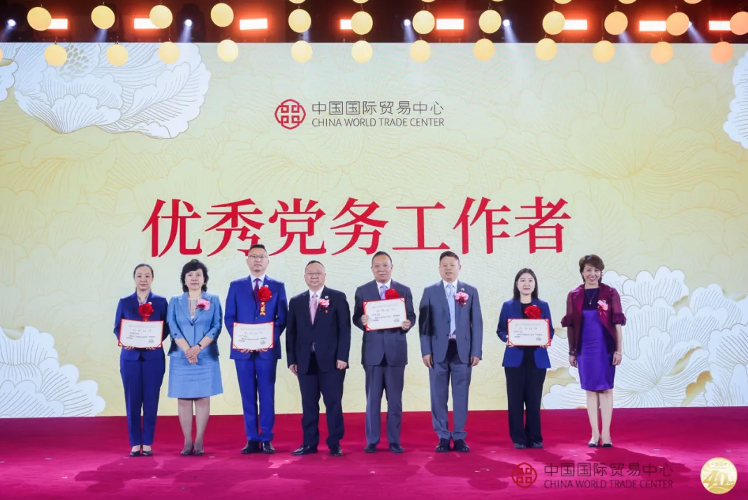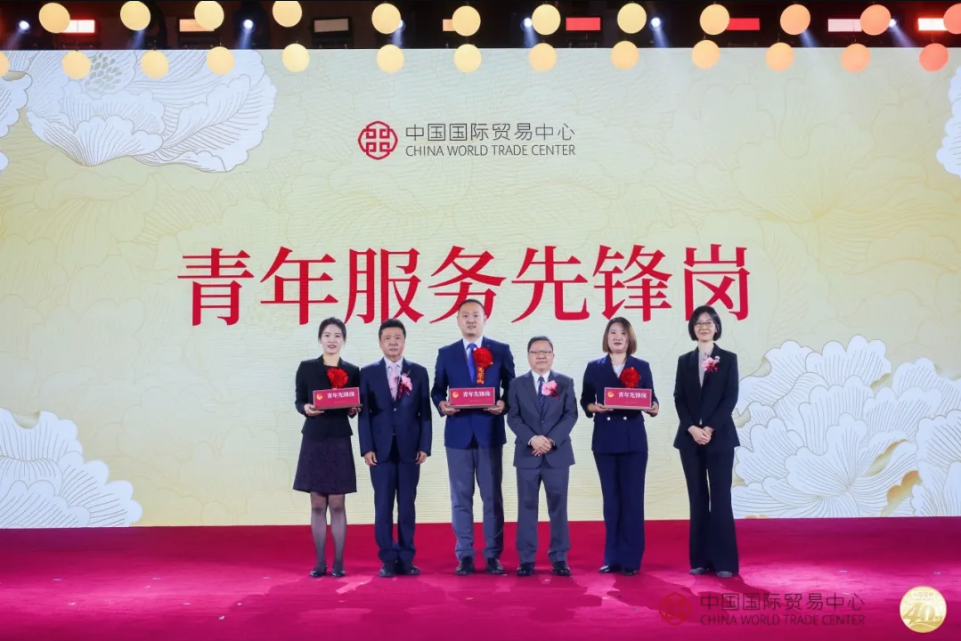 在新時(shí)代新征程上,國(guó)貿(mào)中心的高質(zhì)量發(fā)展始終凝聚著奮進(jìn)力量。在國(guó)貿(mào)中心成立40周年之際,大會(huì)進(jìn)行了國(guó)貿(mào)中心黨委“兩優(yōu)一先”表彰和“青年服務(wù)先鋒崗”授牌活動(dòng)。國(guó)貿(mào)中心黨委書記吳相仁,副書記支陸遜、錢曉瑾和郎寬,分別為優(yōu)秀黨員代表、優(yōu)秀黨務(wù)工作者代表和先進(jìn)基層黨組織代表頒發(fā)榮譽(yù)證書;國(guó)貿(mào)中心有限公司總經(jīng)理梁師麟、股份公司副總經(jīng)理鐘榮明、胡燕敏分別為中國(guó)大飯店前臺(tái)、國(guó)貿(mào)寫字樓禮賓部、國(guó)貿(mào)大酒店酒廊餐廳進(jìn)行“青年服務(wù)先鋒崗”授牌。