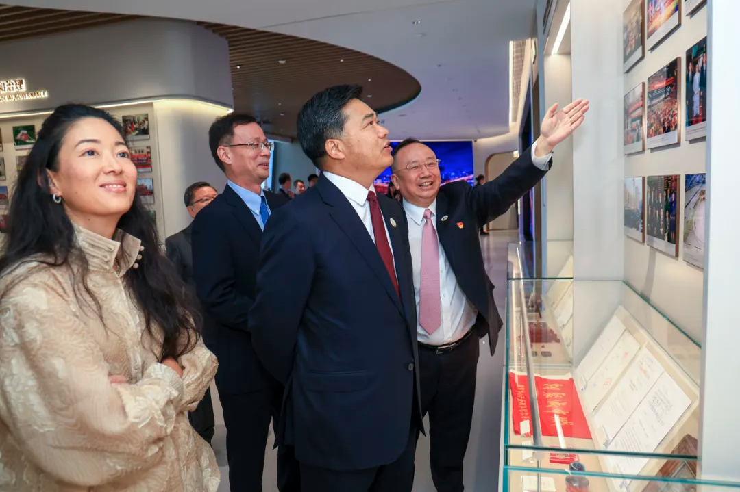當(dāng)日,中國(guó)國(guó)際貿(mào)易中心企業(yè)展示廳在國(guó)貿(mào)大廈A座81層正式啟幕。盛秋平、郭惠光、黃國(guó)祥、吳相仁為展廳揭幕。展廳分為歷史篇、發(fā)展篇和創(chuàng)新篇三大篇章,巧妙融合了先進(jìn)的數(shù)字多媒體技術(shù)、眾多首次公開的珍貴實(shí)物陳列和豐富的歷史照片。每一件展品、每一幅影像都生動(dòng)再現(xiàn)了國(guó)貿(mào)中心40年來歷久彌新的記憶,鮮活展示了“銳意進(jìn)取,鑄就非凡”的卓越征程。