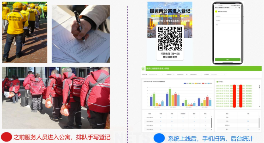 紙質(zhì)登記效率低下,送餐高峰時服務(wù)人員經(jīng)常排隊等待登記,影響公寓形象和工作效率。登記時難以準確核實訪客身份,存在安全隱患。無法有效跟蹤登記人員的行動軌跡,一旦發(fā)生安全問題,難以快速確定相關(guān)人員的位置和活動范圍。