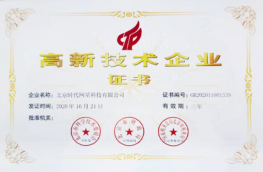 近日,北京時代網(wǎng)星科技有限公司在經(jīng)過基礎條件、高學歷人才占比、產(chǎn)品收入、研究開發(fā)費用、軟件產(chǎn)品知識產(chǎn)權著作、發(fā)明專利等層層篩選和嚴苛的審核后,最終獲評為國家高新技術企業(yè)(高新技術企業(yè)證書編號:GR202011001339;發(fā)證日期:2020年10月21日)。