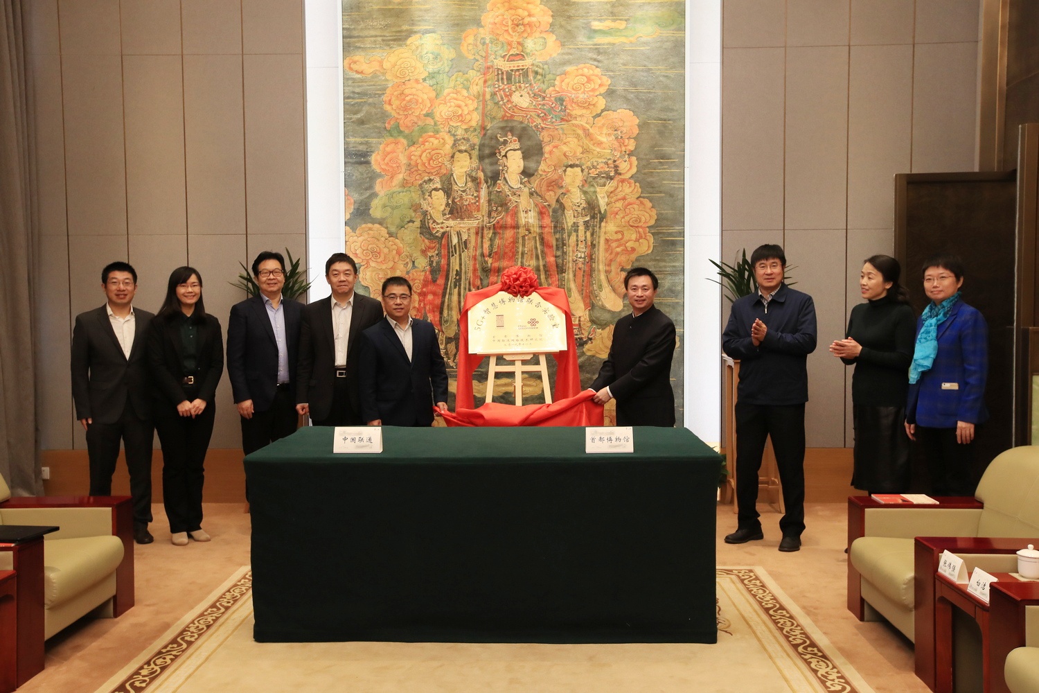 11月15日,中國(guó)聯(lián)通與首都博物館達(dá)成合作意向。中國(guó)聯(lián)通政企客戶部李廣聚總經(jīng)理,北京市文物局副局長(zhǎng)兼首都博物館黨委書記白杰,黨委副書記、首都博物館館長(zhǎng)韓戰(zhàn)明共同見證了5G+智慧博物館聯(lián)合實(shí)驗(yàn)室的揭牌成立。中國(guó)聯(lián)通北京市分公司副總經(jīng)理王利、首都博物館副館長(zhǎng)楊文英代表雙方簽署了整體戰(zhàn)略合作協(xié)議;中國(guó)聯(lián)通網(wǎng)絡(luò)技術(shù)研究院副院長(zhǎng)遲永生、首都博物館黨委副書記靳非代表雙方簽署了5G+智慧博物館聯(lián)合實(shí)驗(yàn)室合作協(xié)議。
